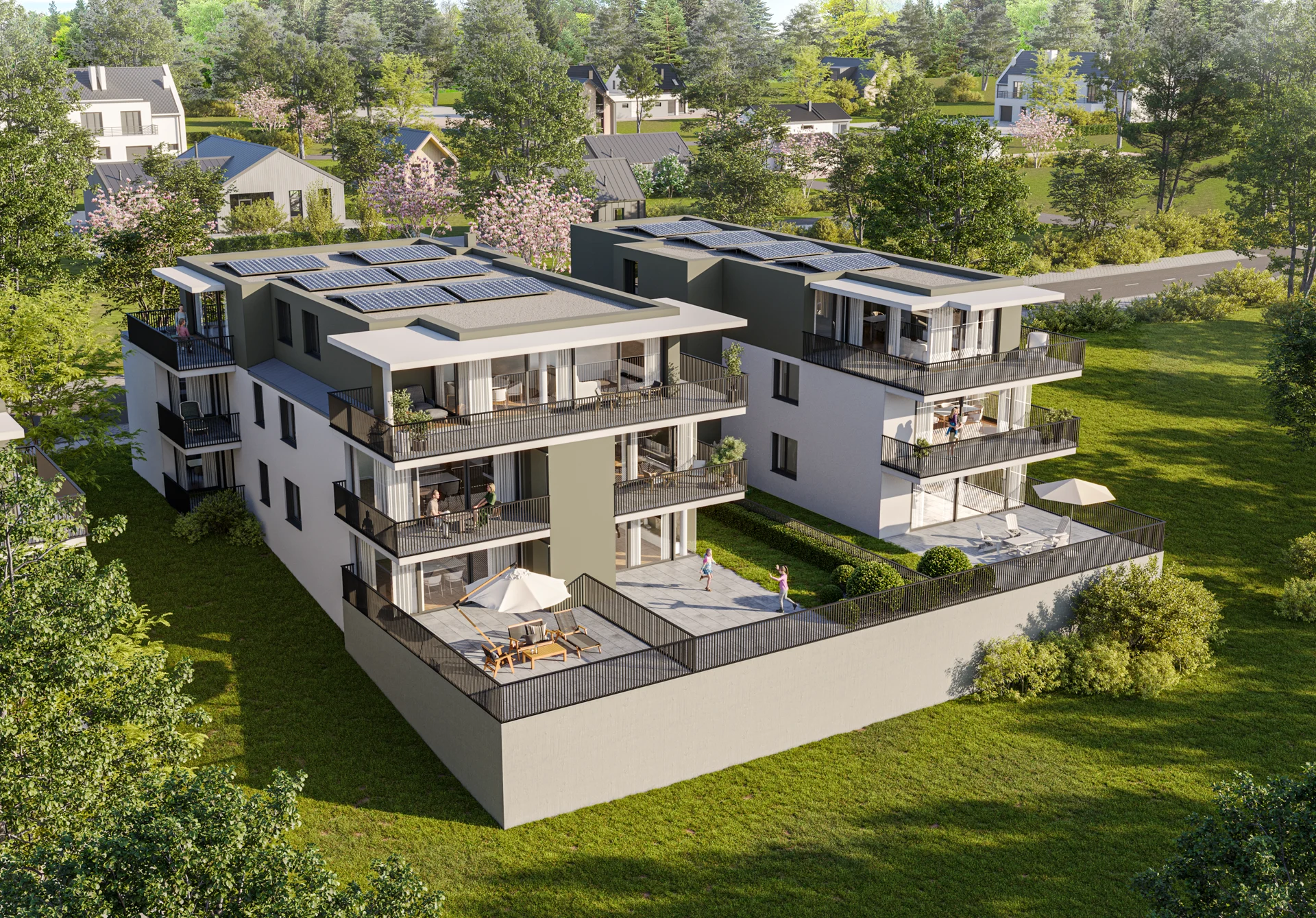 In massiver Bauweise werden ab Sommer 2024 zwei Mehrfamilienhäuser mit zentraler Tiefgarage gebaut:
