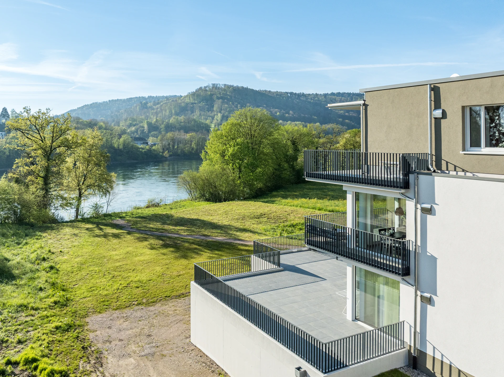 Sie sehnen sich nach Ruhe und einem schönen Blick ins Grüne? Dann sind Sie hier genau richtig. Das Projekt befindet sich in einer einmaligen Lage direkt am Rhein. Der unverbaubare Blick über den eigenen Park hinweg, auf den Rhein und in die Schweiz ist einmalig.